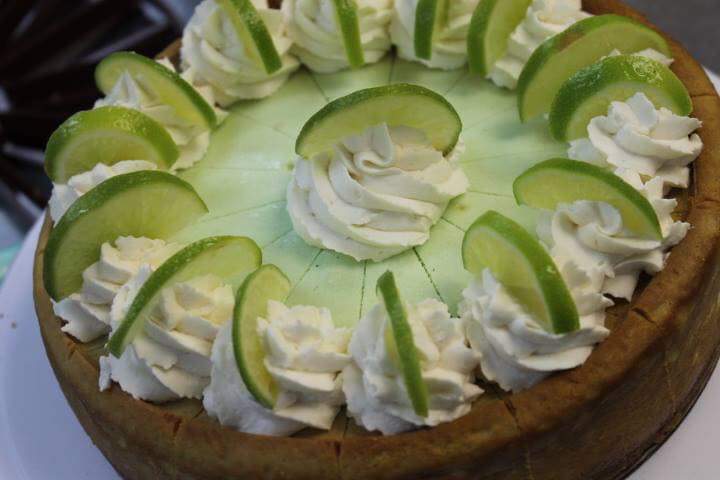 Tart, bitterness, and a hint of sweetness makes this Key Lime Cheesecake irresistible. Piped along the edges with our homemade whipped cream.